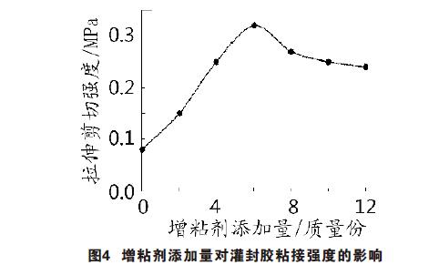 (3)當自制增粘劑添加量為5.7 %時,灌封膠拉伸剪切強度較大,達0. 32 MPa;