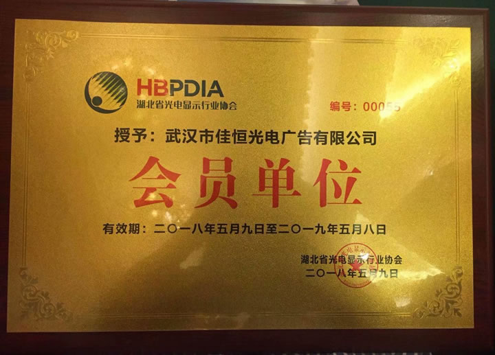 祝賀我公司榮獲湖北省光電顯示行業(yè)協(xié)會(huì)會(huì)員單位